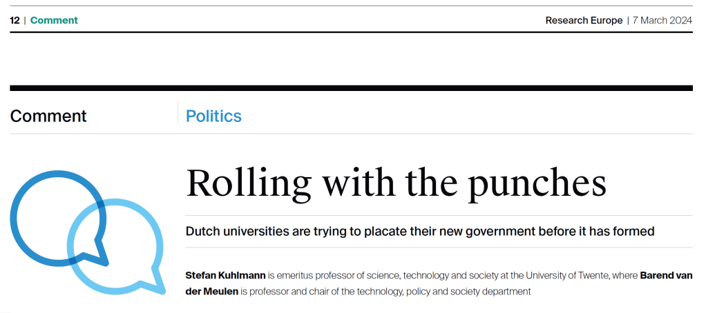 Barend van der Meulen (University of Twente) and I have published a comment in ResearchEurope (March 7, 2024).